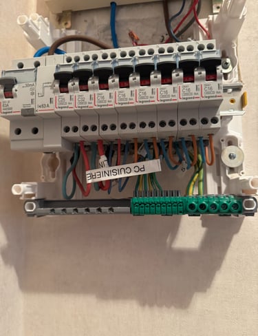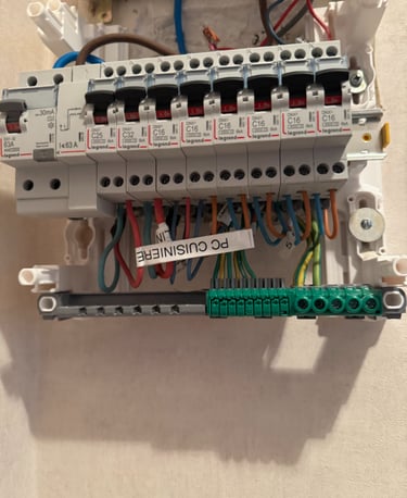 Nous accompagnons vos projets de rénovation électrique, de la mise en sécurité de votre tableau à la remise aux normes complète. Nous intervenons également pour vos besoins quotidiens, tels que l'ajout de prises, l'installation de nouveaux éclairages ou la création de circuits dédiés.